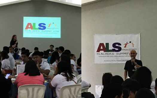 “ALS” stands for Alternative Learning System (ALS) and is a parallel education system that is an option for those who do not or cannot have access to the Philippine formal education system. ALS provides Academic, Livelihood, Spiritual and Social Education to former out-of-school youth and adults in the elementary and secondary levels. Mobile ALS Teachers provide the alternative education and, at the secondary level, this is aimed at preparing youth and adults to take and pass the Junior High School and Senior High School equivalency tests, respectively. Equipped with the knowledge and skills at said equivalency levels, test passers are helped to become more job-ready.
