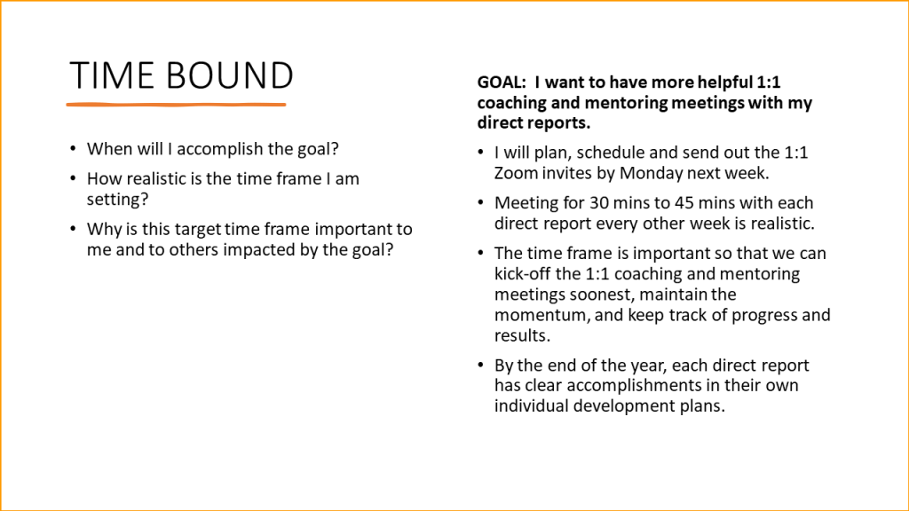 If you enjoy watching videos, here’s a short video on another example to reinforce how to write SMART developmental goals for yourself.